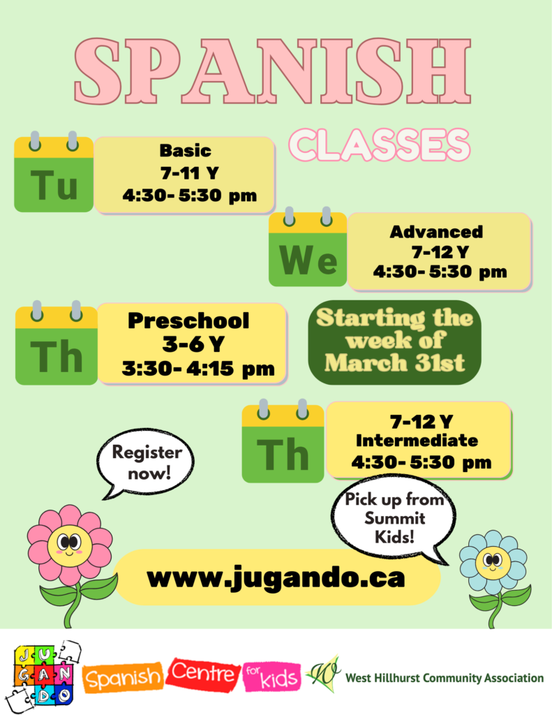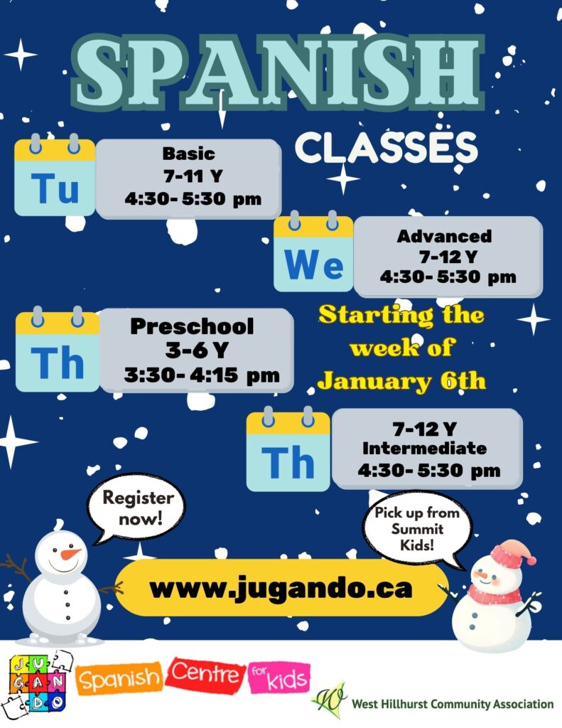JUGANDO (pronounced “who-gan-doe”), the Spanish word for “playing”, is the name of our Spanish Centre for Kids. We’ve drawn on our experience in early childhood education to create a fantastic Spanish-as-a-second-language curriculum for children aged 3-13. We are excited to introduce your child to the amazing world of Spanish and language learning through singing, dancing, cooking, story-telling, and most importantly: PLAYING!